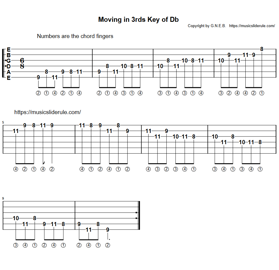 Moving in 3rds Exercise using the C#/Db Major Scale both Ascending and Descending.